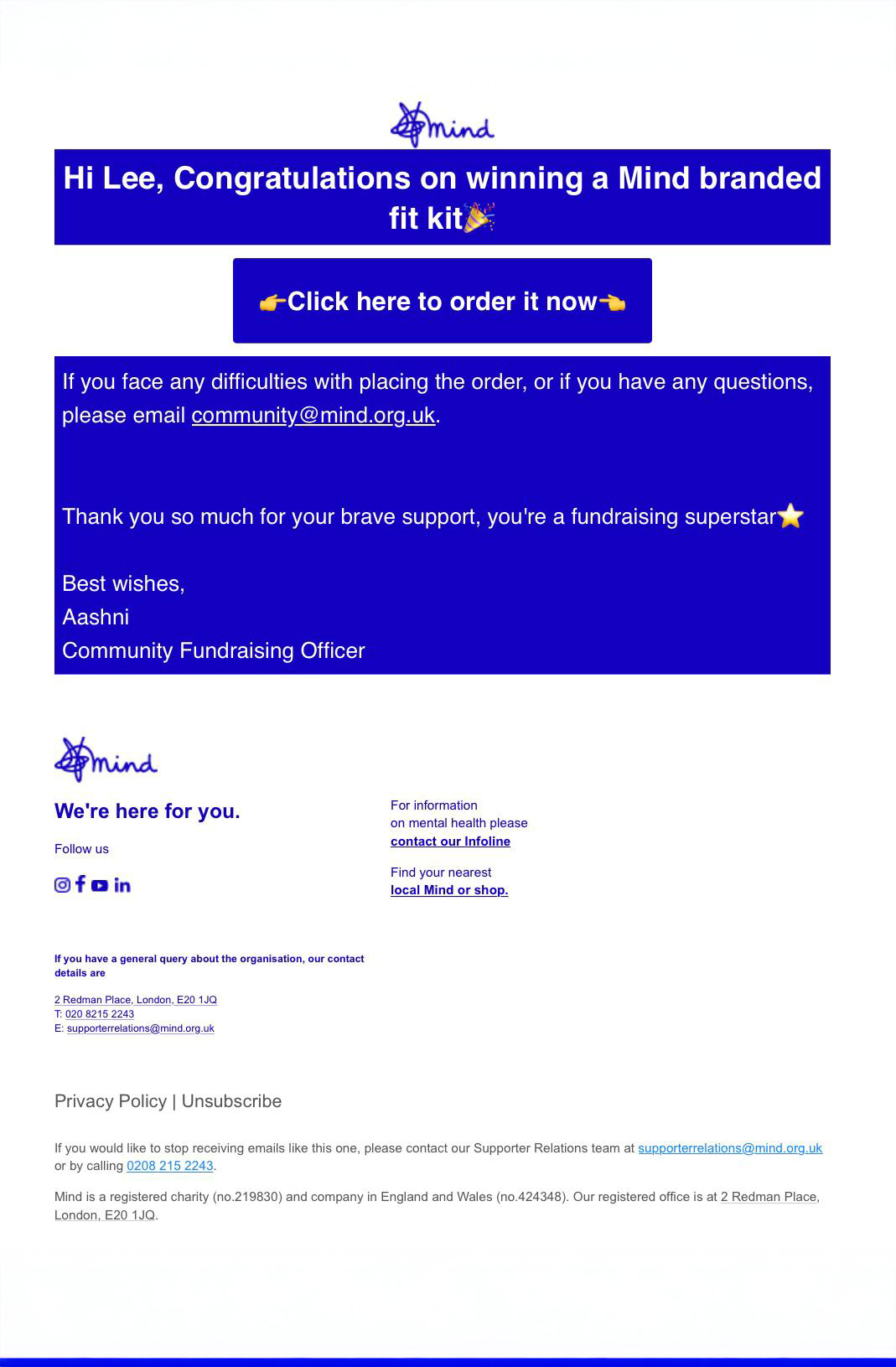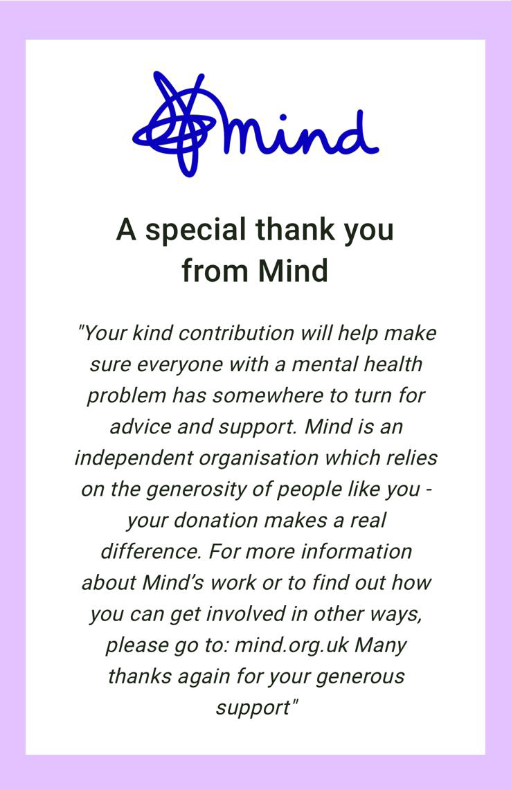 We are proud to support Mind and to help them raise funds for those that experience mental health issues.